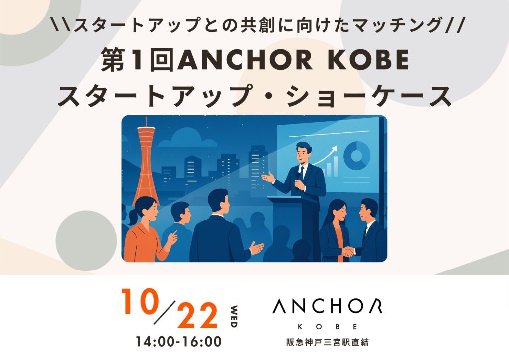 10月22日(水)に神戸市知的交流拠点「ANCHOR KOBE(アンカー神戸)」にて開催される「第1回ANCHOR KOBE スタートアップ・ショーケース」に登壇します。
